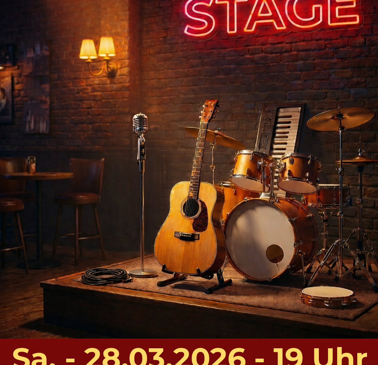 Der Fokus liegt auf Live-Musik: eigene Songs, Covers, Solo-Acts, Duos oder Bands – alles ist willkommen. Egal ob erste Bühnenerfahrung oder schon öfter aufgetreten: Hauptsache Musik und gute Stimmung.
